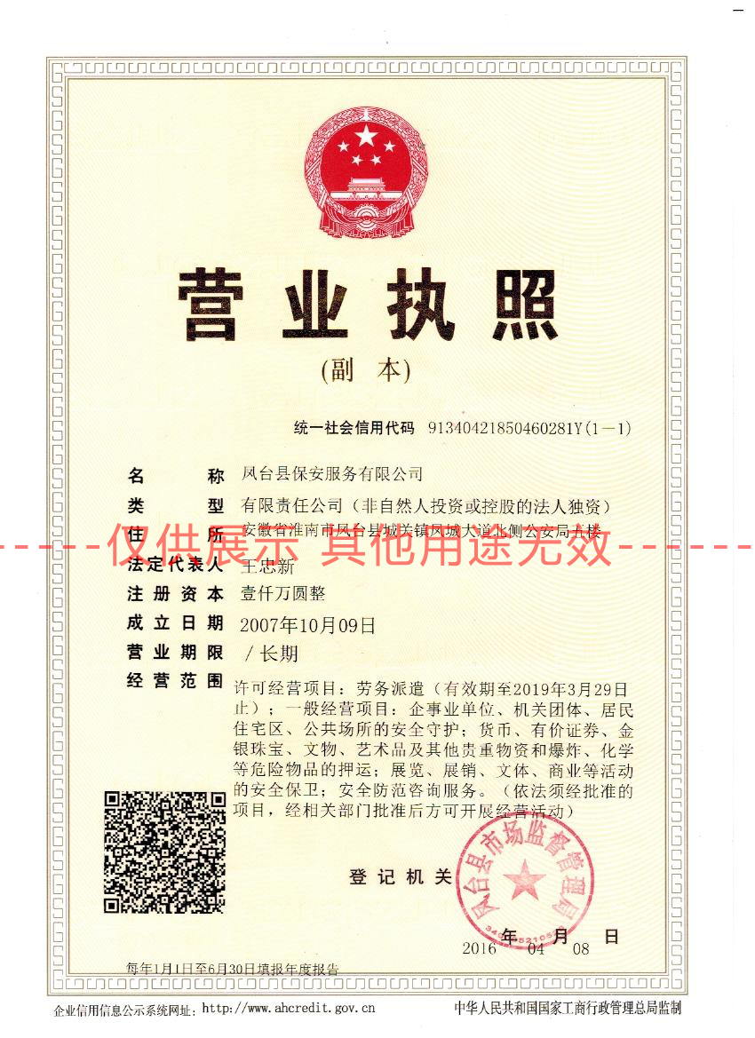 鳳臺保安服務(wù)有限公司成立于2007年,是經(jīng)鳳臺縣公安局行政許可的經(jīng)營企業(yè),注冊資金1000萬元,具有國企背景(安徽州來控股有限公司),更是一家朝氣蓬勃的年輕企業(yè)。公司主營勞務(wù)派遣、保安服務(wù)、武裝押運(yùn)等。 >>了解更多